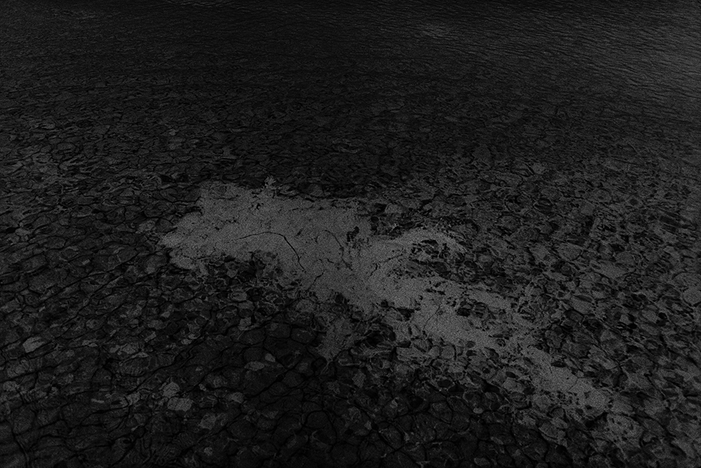 Dans « TERRAE » les éléments se déploient comme des strates incertaines : eau, roche, végétation, peau. Rien n’y est fixé, Tout glisse, se dépose, se soulève à peine. Le grain, les voiles, les zones brûlées deviennent partie prenante du paysage : une matière qui sédimente la lumière autant que le réel.